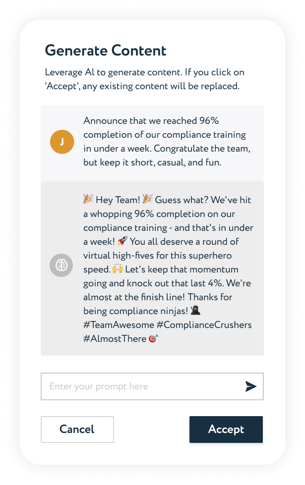 Generate engagement and activity reports to understand and improve the impact of your internal communications strategy.