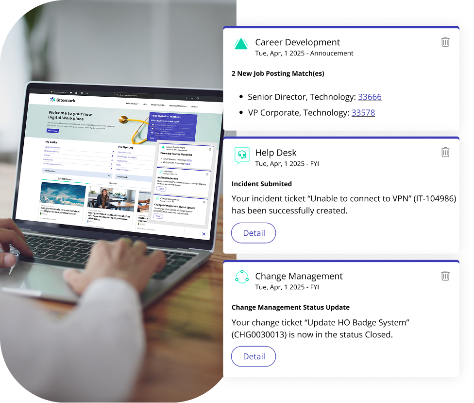 40% of an employee’s productivity is lost switching between apps. Accomplish more by accessing information across tools, workflows, and more from an intuitive, AI-powered digital assistant chatbot.