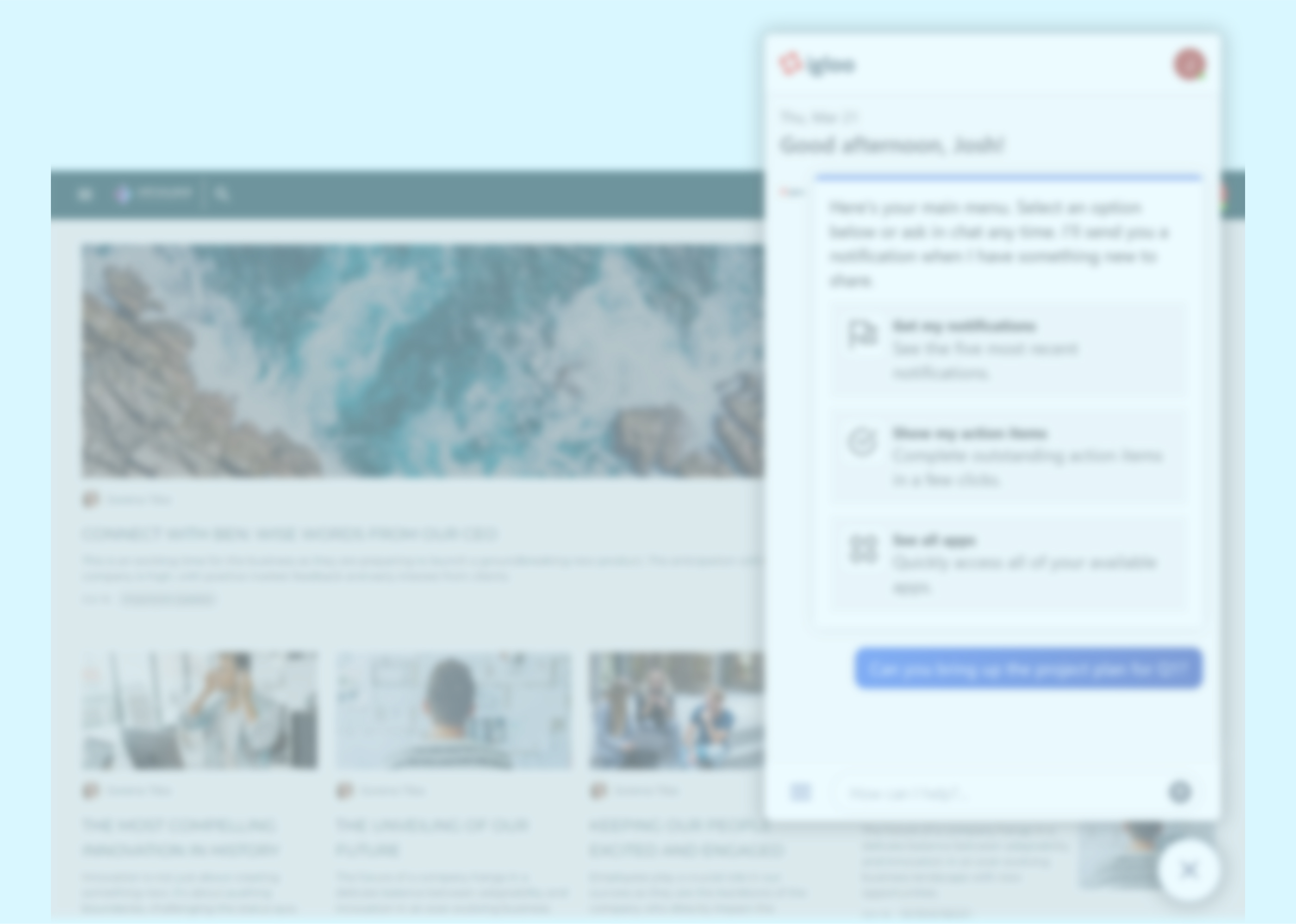 Employees gravitate towards tools that make their lives easier. By offering the configurability to streamline the daily tasks of virtually every employee group, Igloo gives workers what they need to feel valued, supported, and engaged.